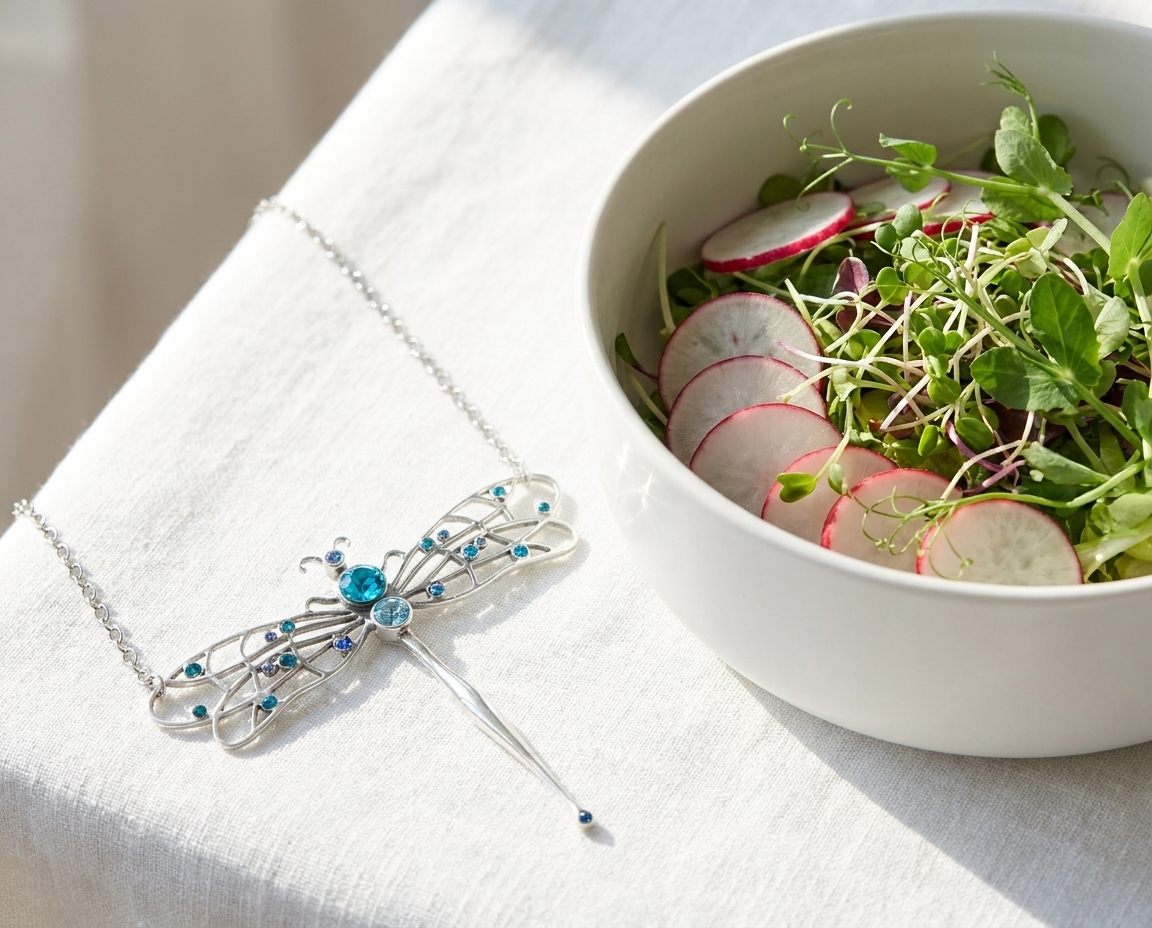 - Сияние: Сбрызни салат заправкой прямо перед подачей. Капли масла на свету будут давать те же искристые блики, что и кристаллы Jenavi.