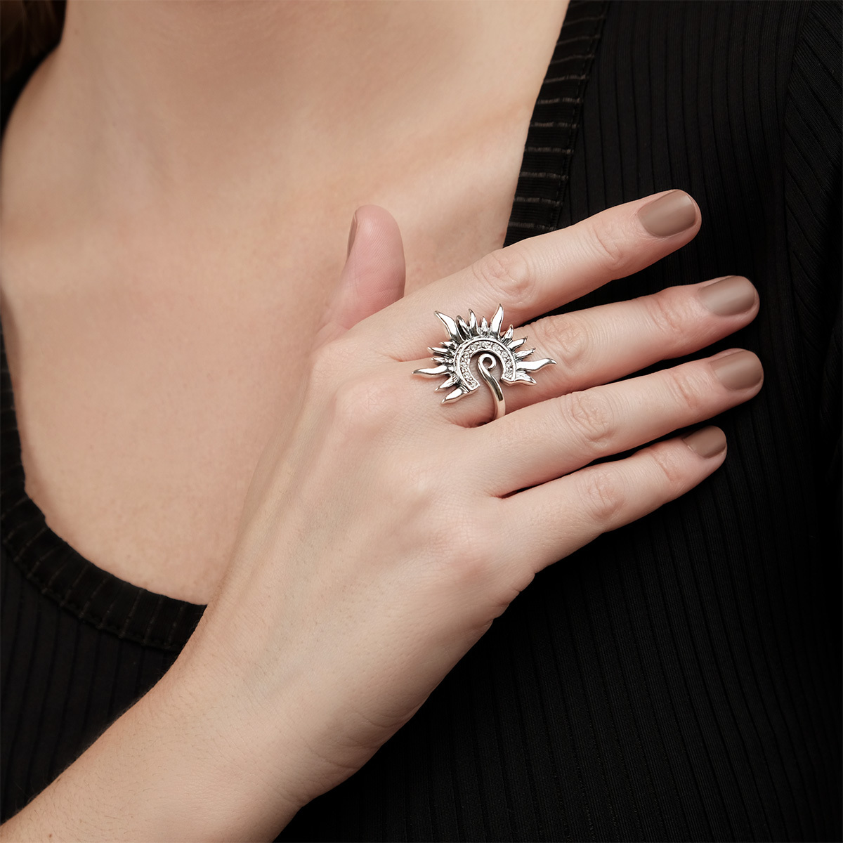 Красивое кольцо в дизайне в виде солнца, украсят ваш летний образ.
