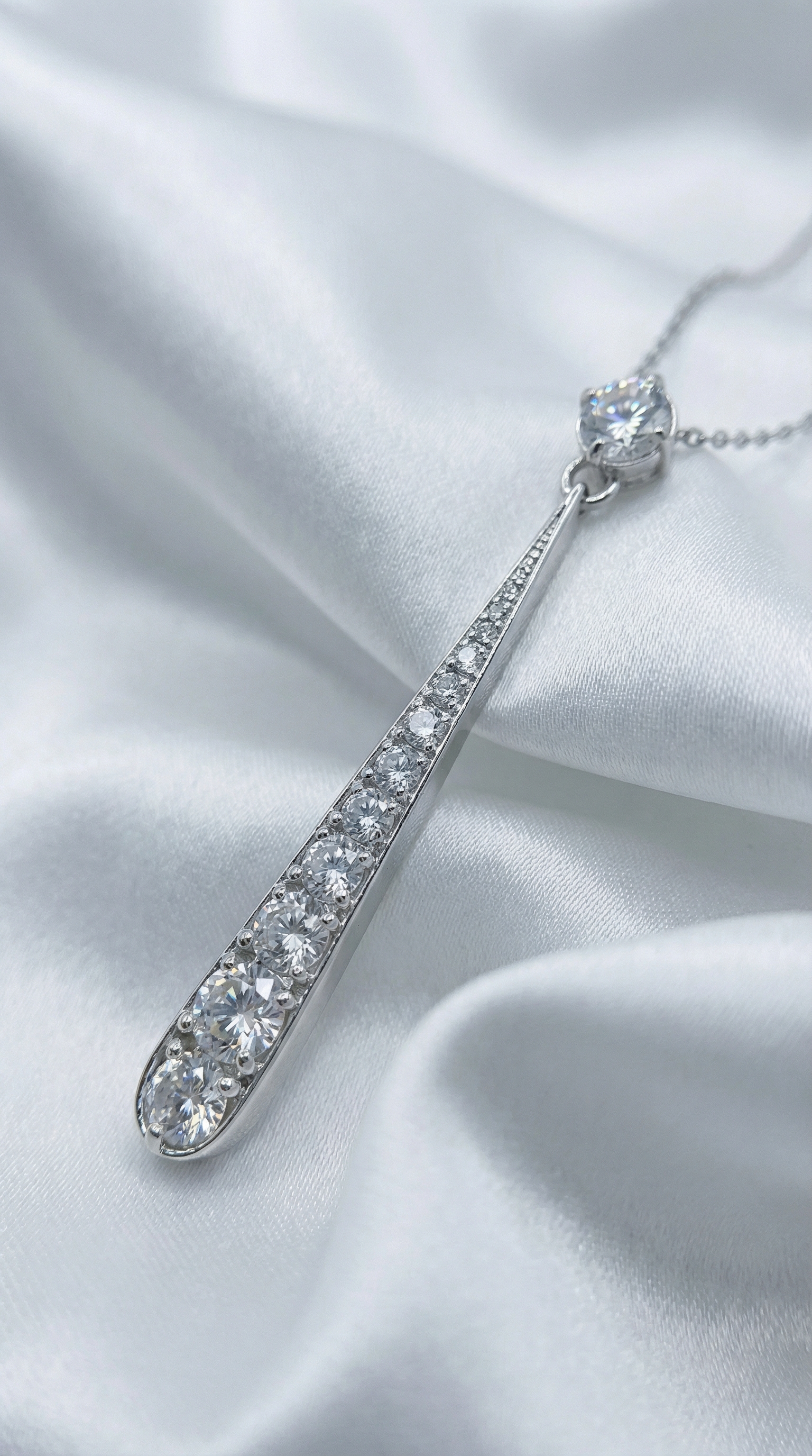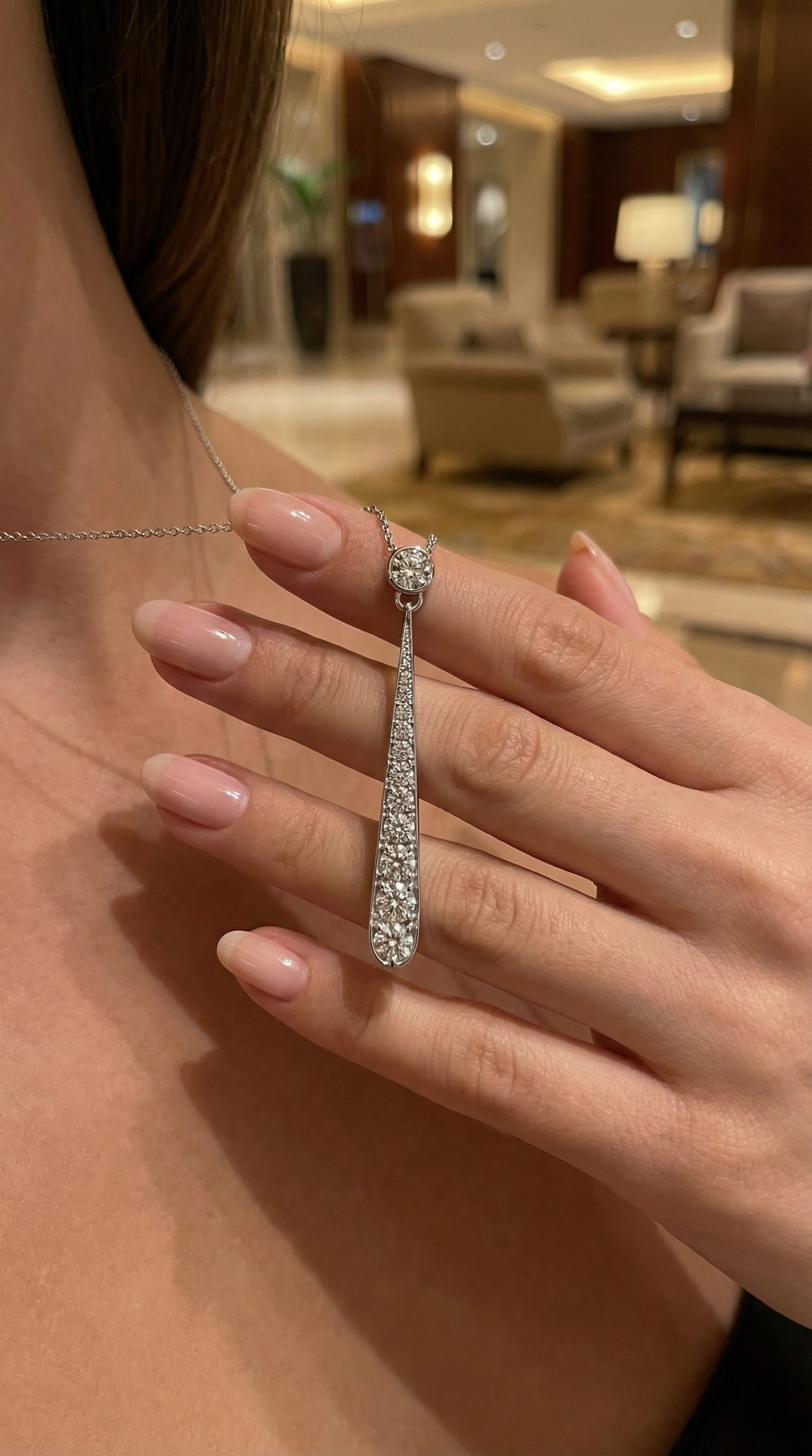 - Дизайн: Удлиненная, сужающаяся к низу форма ("пика" или "капля") визуально вытягивает шею и привлекает взгляд.