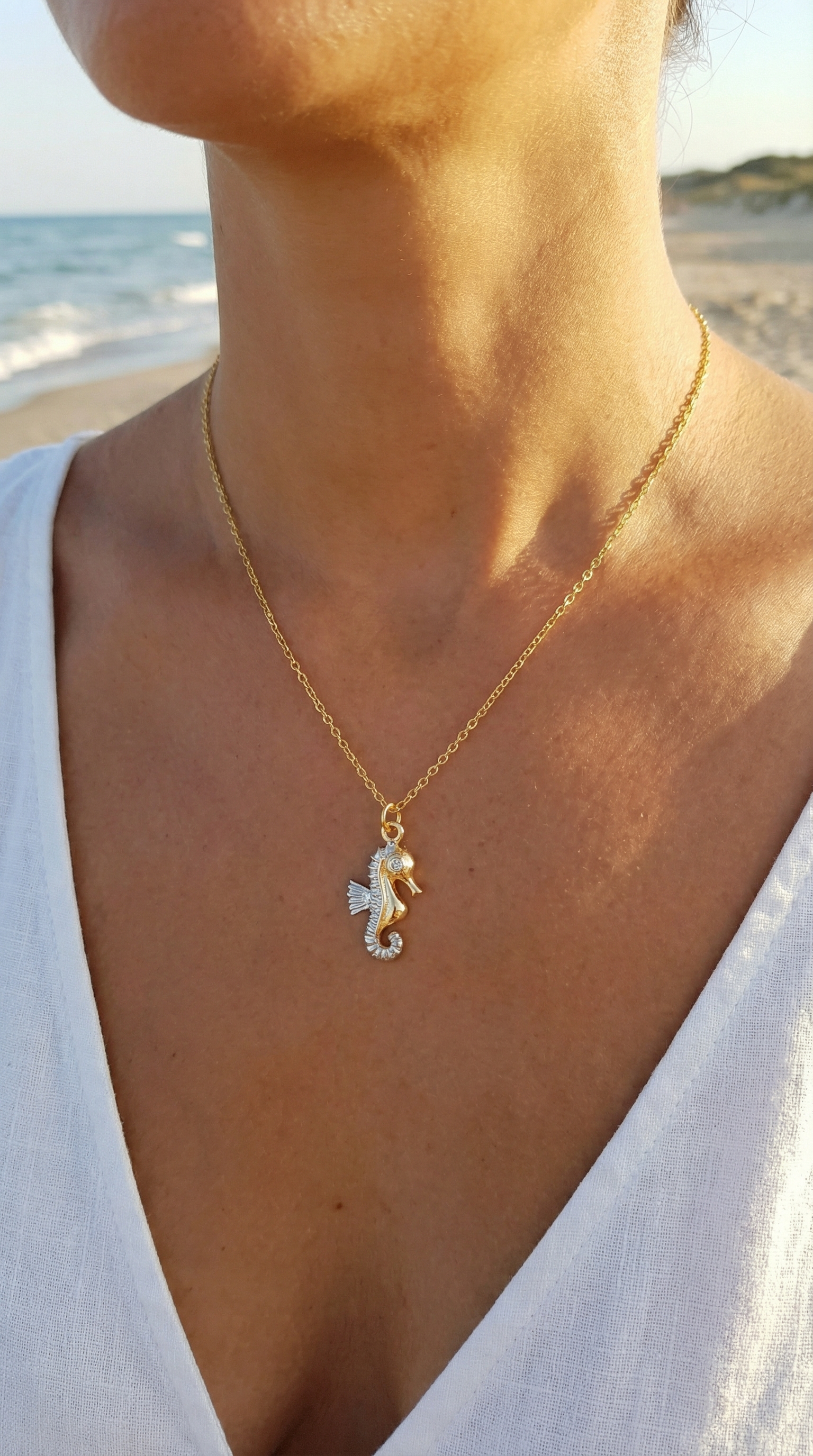 Кулон Морской конек на цепочке, двухцветная подвеска