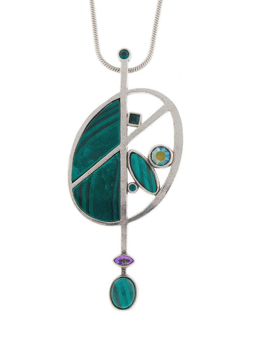 Красивая подвеска с интересным дизайном в сюрреалистическом стиле с прекрасными вставками поделочного камня малахит, подчеркнет ваш утонченный и стильный вкус.