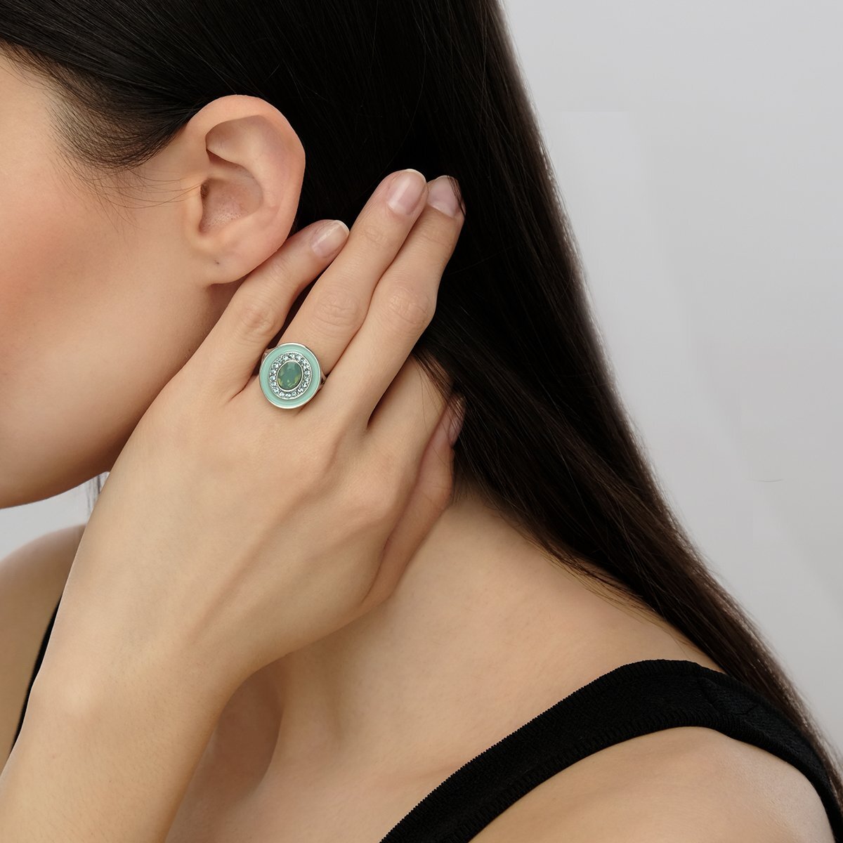 Красивое летнее кольцо из коллекции Color. С яркими дополнительными вставками кристаллом и эмалью. Придаст яркую роскошь и элегантность в вашем образе.