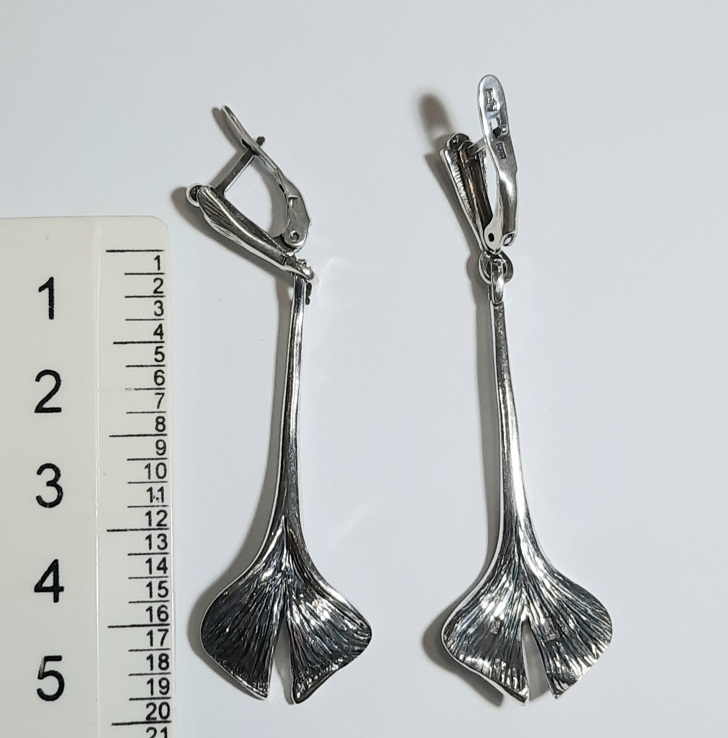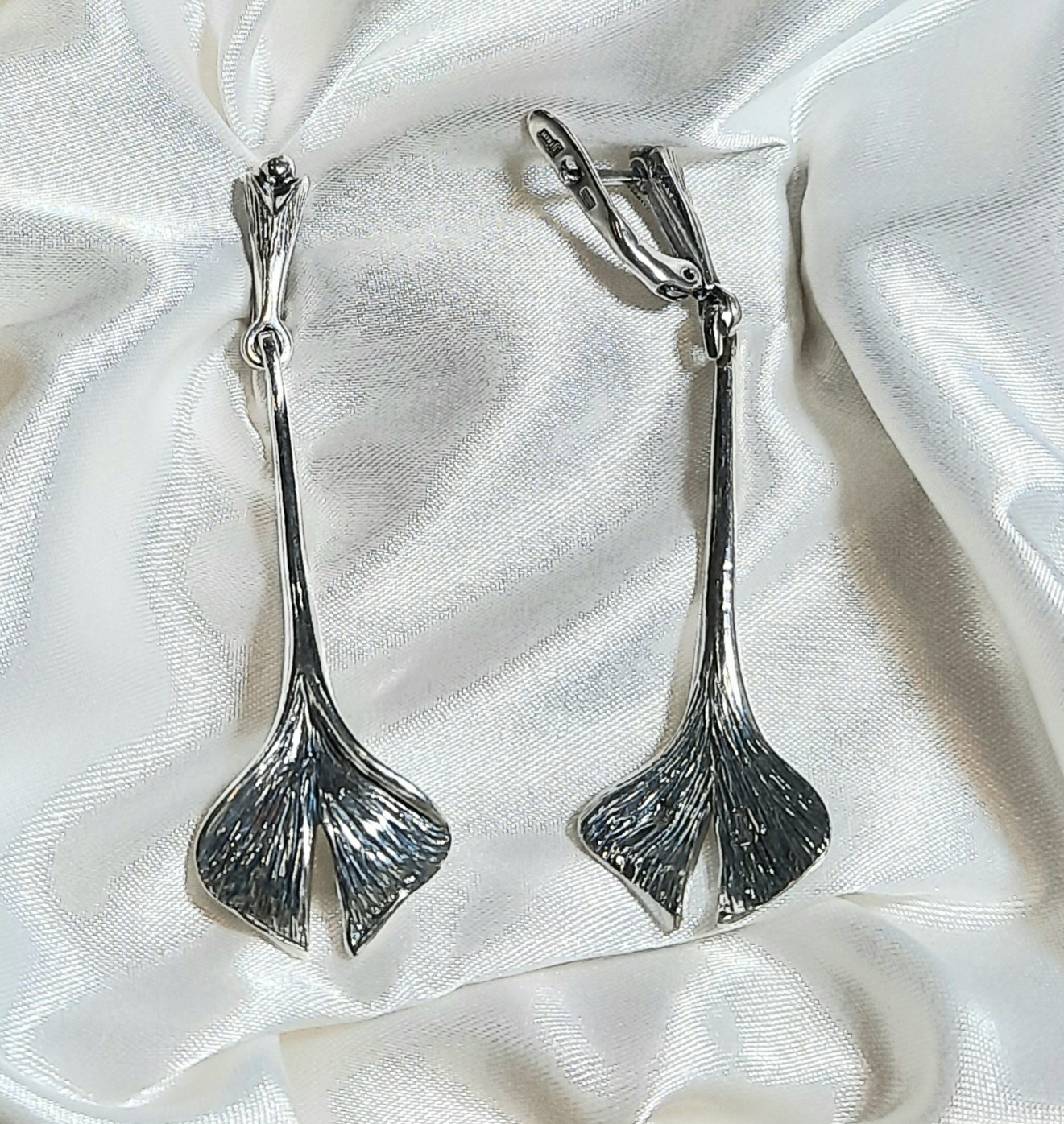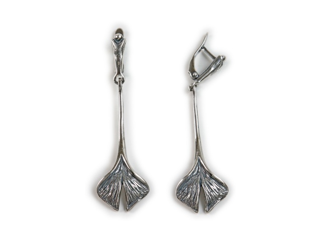 Стильные женские серьги "Гинко Дл." в серебряном покрытии из коллекции "Ботаника" с английским замком от компании Jenavi.